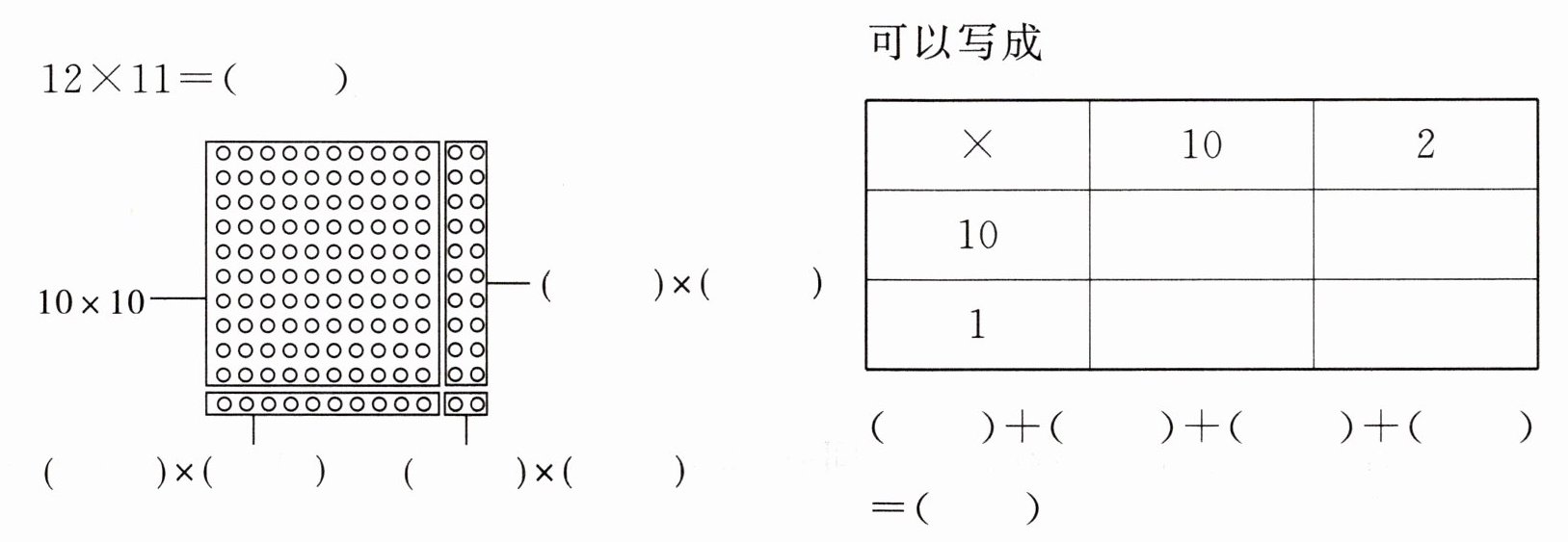2. 下面是淘气计算两道两位数乘两位数的乘法算式时用到的方法,请你写出这两道算式。