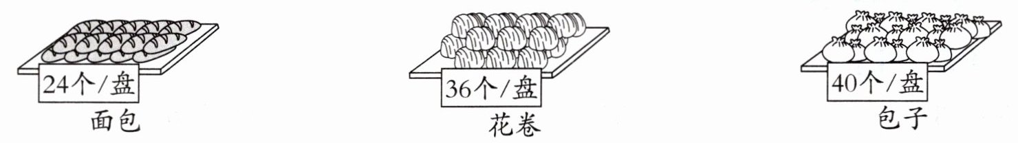 (1)今天卖出 13 盘面包,15 盘花卷,20 盘包子。三种食品各卖多少个?