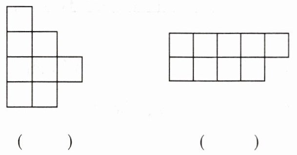 2. 下面哪个图形的面积大(每个小方格面积为 1 平方厘米)? 面积大的图形画“√”,面积小的画“○”。