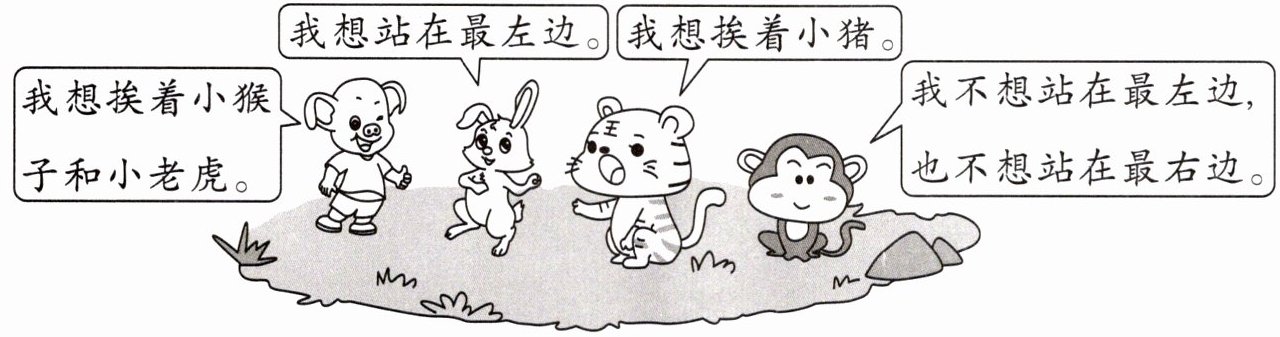 2. 大树爷爷想为小动物们拍照留念,请你按照小动物们的要求排好队伍。