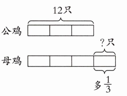 $12×\frac{1}{3}=4$(只) 母鸡比公鸡多 4 只