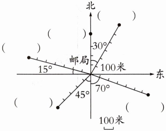 (4)超市在南偏东 70°,距离邮局 700 米。