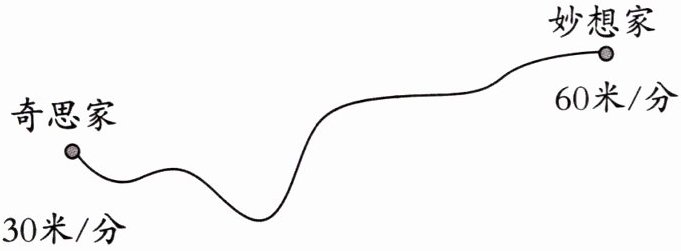 答:出发 5 分后相遇,相遇地点到奇思家的路程是 150 米。