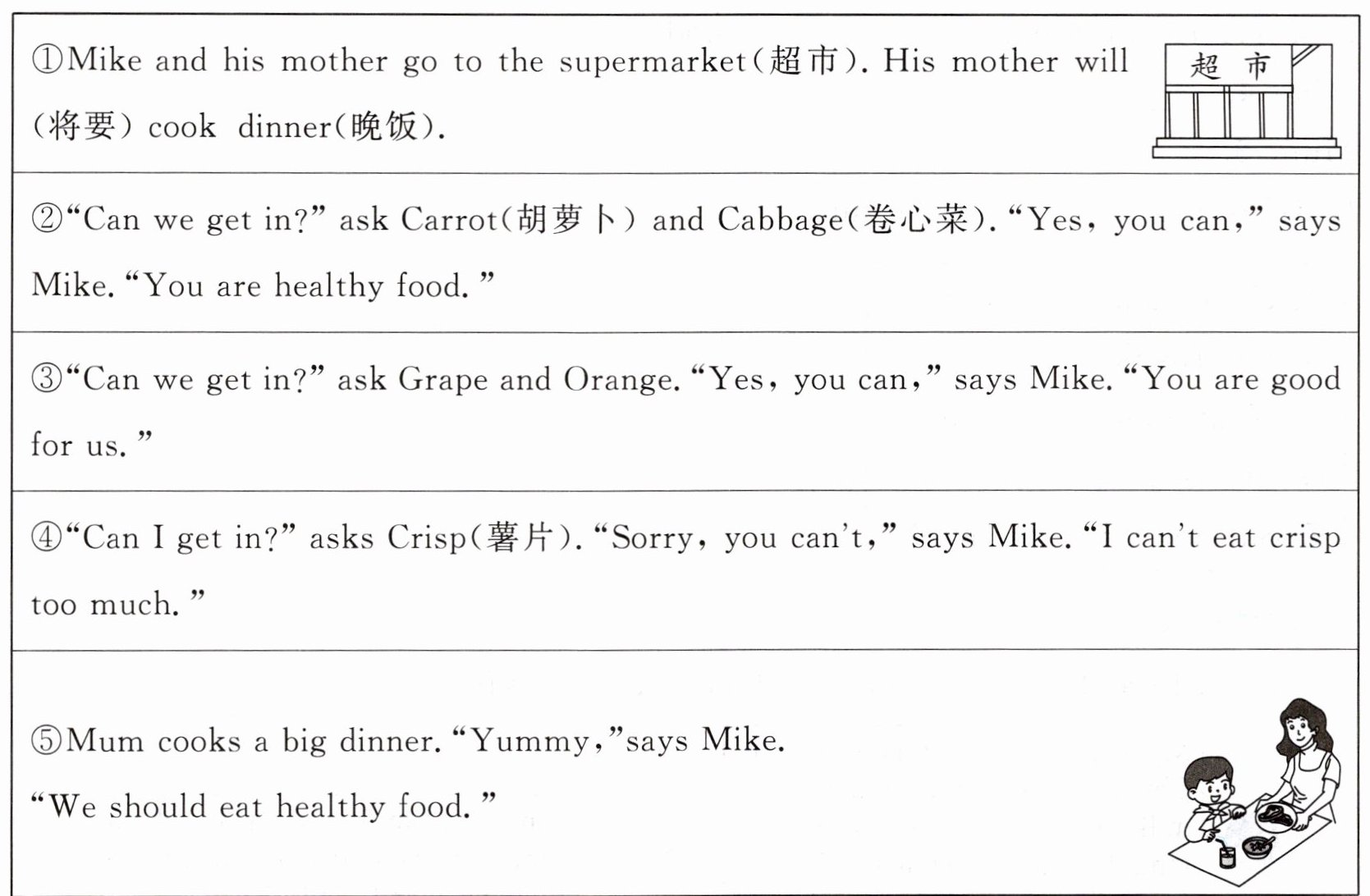任务一:将 Mike 和妈妈购买的东西圈出来。