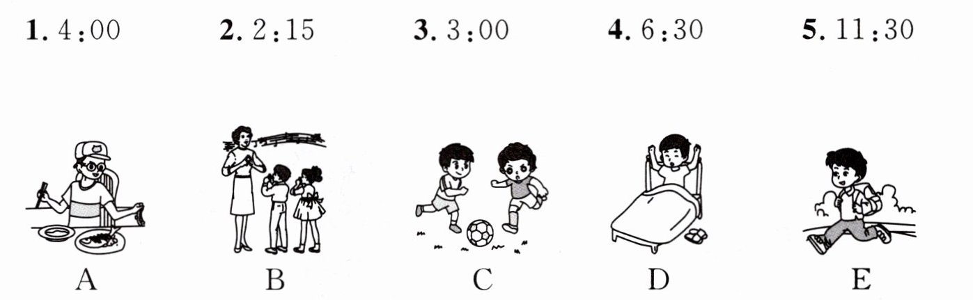 三、听录音,将时间与相应的图片连线。