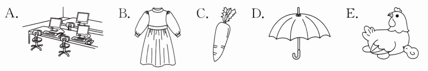 Today I go shopping with my mum. There are many vegetables and 1. ____