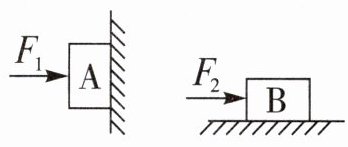 N;物体 B 重 30 N,受到 $ F _ { 2 } = 20 $ N 的水平推力静止不动,则物体 B 所受的摩擦力是20