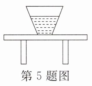 5. 如图所示,一只开口的杯子装上 8 cm 高的水后,放在水平桌面上,已知杯子内部底面积为 50 cm²,外部底面积为 60 cm²,杯子装上水后的总质量为 0.6 kg,则水对杯底的压力为