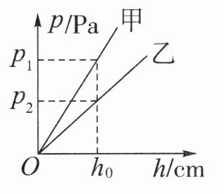 2. 小明在探究液体内部压强的规律时,大胆探索,用甲、乙两种液体多次实验,根据实验数据画出了液体压强随深度变化的图像。如图所示,则甲、乙两种液体的密度关系是 …………………………………………………(