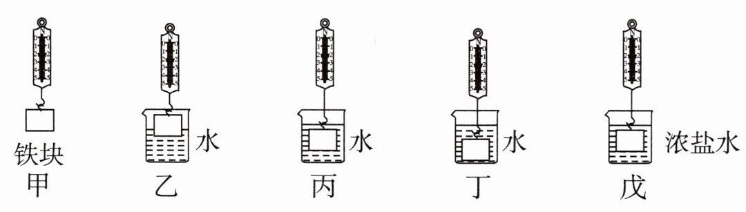 (1)图乙、丙中弹簧测力计的示数均小于图甲中弹簧测力计的示数,说明浸入水中的铁块