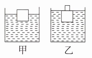 5. 体积为 1000 cm³ 的正方体木块漂浮在水面上,木块没入水中部分的体积为 600 cm³,如图甲所示,则该木块的密度为