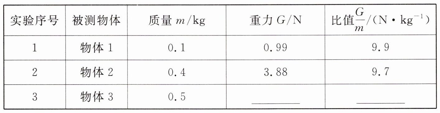 (3)根据上面实验结果可知:同一物体的重力与质量的比值为