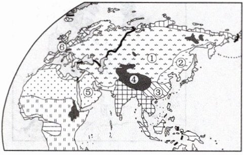 。(2)在上图中用字母标注下列气候类型分布的位置。