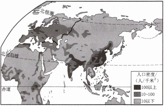(1)亚洲哪些地区的人口分布比较稠密?哪些地区的人口分布比较稀疏?