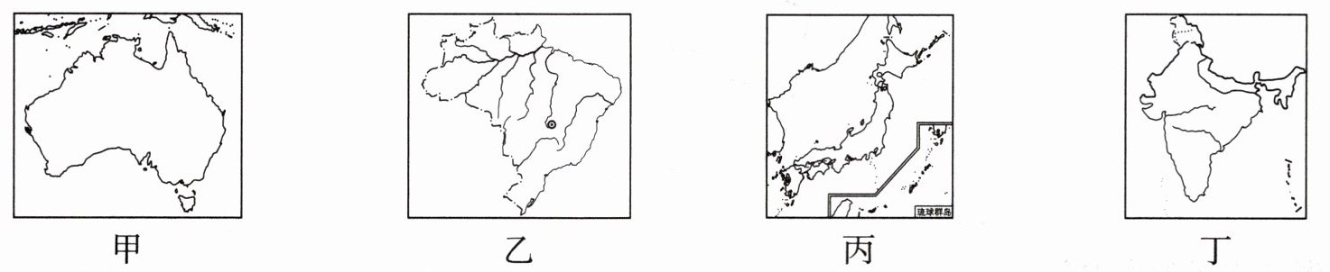 不同的国家,由于地理位置不同,自然环境和人文环境千差万别。读四国轮廓图,完成13~14题。