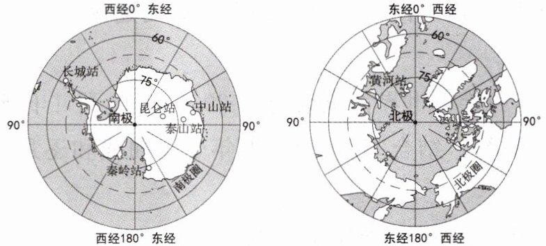 (2)我国在南、北极地区建立的科学考察站中,极昼、极夜现象持续时间最长的是