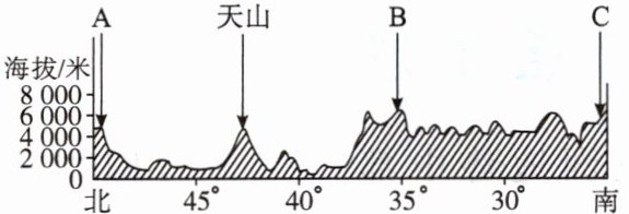 (填“AB”或“BC”)段。(3)图中山脉C以南是