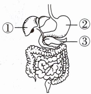 2. 在右下图所示的器官中,分泌的消化液能在小肠中发挥作用的是 …………………(