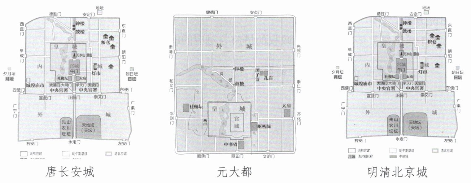 3. 【探秘古都】由以下三幅我国古代都城平面图可知,我国古代都城(