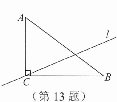13. 如图,$\triangle ABC$中,$∠ACB= 90^{\circ }$,$AC= 6cm$,$BC= 8cm$,直线$l经过点C且与边AB$相交。动点$P从点A出发沿A→C→B路径向终点B$运动,动点$Q从点B出发沿B→C→A路径向终点A$运动。点$P和点Q的速度分别为1cm/s和2cm/s$,两点同时出发并开始计时,当点$P到达终点B$时计时结束。在某时刻分别过点$P和点Q作PE⊥l于点E$,$QF⊥l于点F$,设运动时间为$ts$,则当$t= $