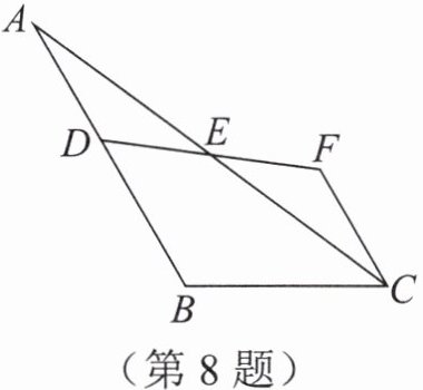 8. 如图,已知$AB// CF$,$E为DF$的中点,若$AB= 9cm$,$CF= 4cm$,$BD$长为(