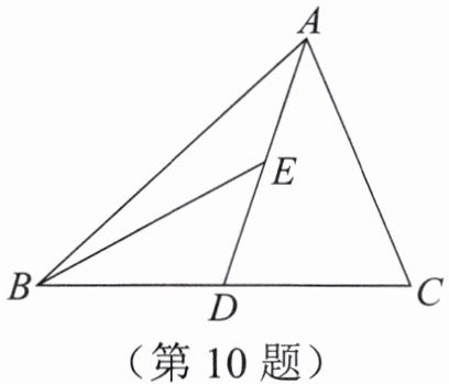 10. 如图,$AD为\triangle ABC$的中线,$BE为\triangle ABD$的中线。若$\triangle ABC$的面积为40,$AE= 5$,则点$B到AE$边的距离为______