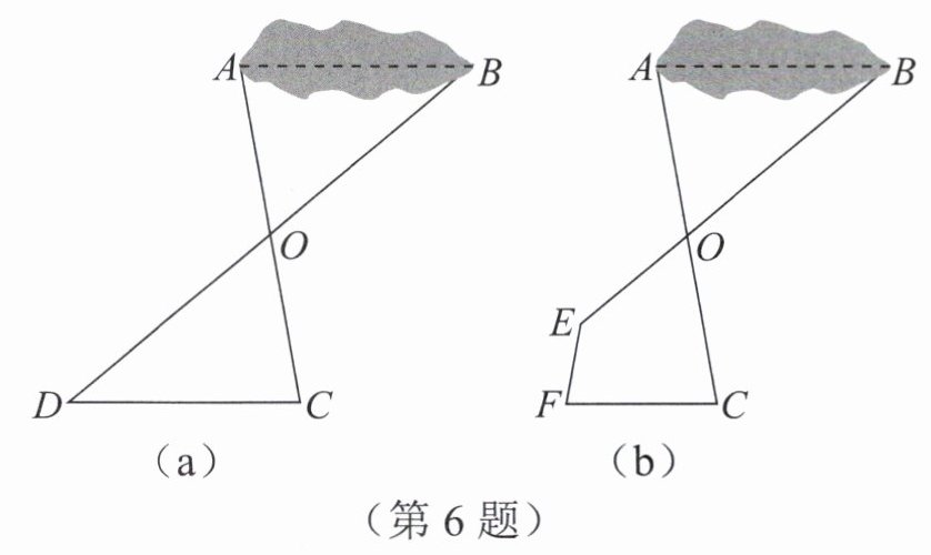 |素材 1|甲同学提出测量建议:如图(a),先在平地上取一个可直接到达 A,B 的点 O,连接 AO,BO,并分别延长 AO 至点 C,延长 BO 至点 D,使$CO= AO$,$DO= BO$,最后测出 CD 的长即为 A,B 间的距离|