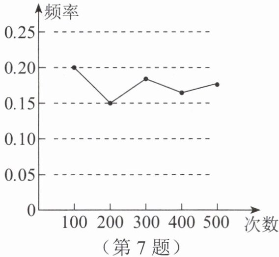 7. 某小组在“用频率估计概率”的试验中,统计了某种结果出现的频率,绘制了如图所示的折线图,那么最符合这一结果的试验是(