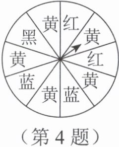 4. 暑假期间,某商场为了吸引顾客,对一次购物满500元的顾客给予一次转转盘得奖券的机会。如图是一个可以自由转动的转盘(转盘被等分成10个扇形),转动转盘,停止后,根据指针指向,参照下表获得奖券(指针指向黄色区域不获奖,指向分界线时重转,直到指向某一扇形为止):