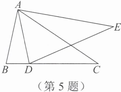 5. 如图,在$△ABC$中,点D是BC上一点,点E为$△ABC$外部一点,连接DE,$AC= AE$,$∠C= ∠E$,$∠BAD= ∠CAE= 24^{\circ }$。