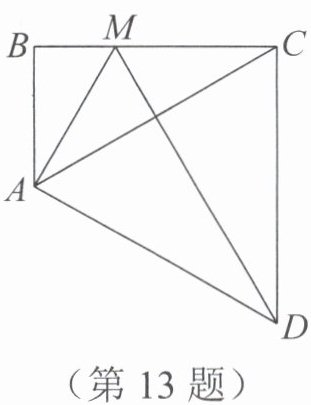 13. 如图,$△ABC$中,$∠B= 90^{\circ}$,以AC为边向右下方作$△ACD$,满足$CA= AD$,点M为BC上一点,连接AM,DM,若$∠BAM= \frac{1}{2}∠CAD$,$BM= \frac{6}{5}$,$CM= \frac{13}{5}$,则$DM= $
