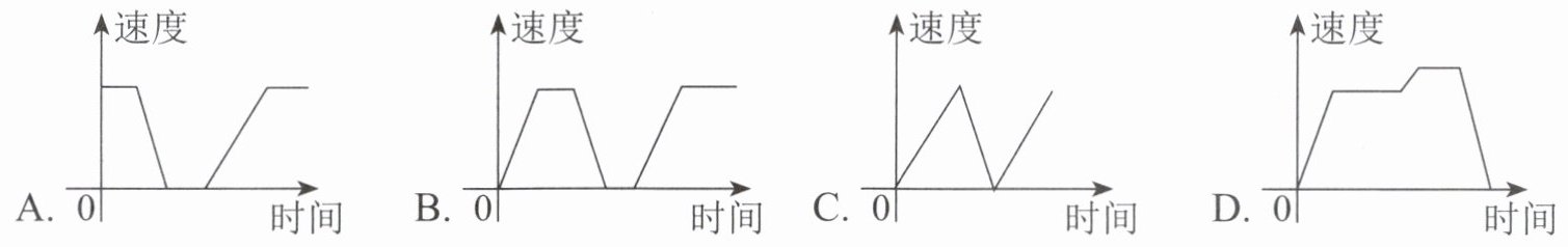 7. 小丽从常州开车去南京,开了一段时间后,发现油所剩不多了,于是开到服务区加油,加满油后又开始匀速行驶,下面四幅图中可以近似地刻画该汽车在这段时间内的速度变化情况的是(