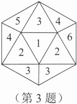 3. 如图,有一枚质地均匀的正二十面体形状的骰子,其中的1个面标有“1”,2个面标有“2”,3个面标有“3”,4个面标有“4”,5个面标有“5”,其余的面标有“6”,投掷这枚骰子一次,求下列事件的概率: