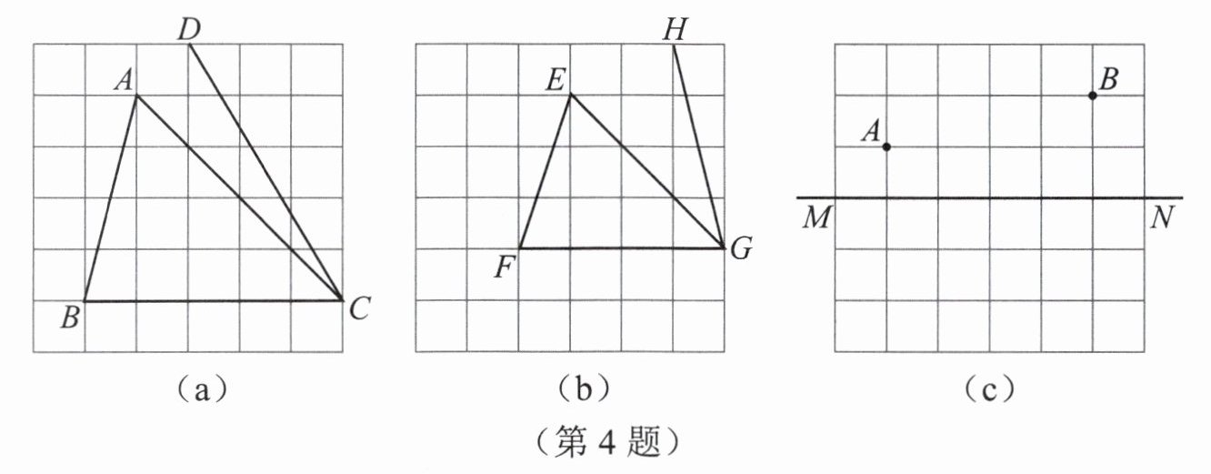 4. 如图,在正方形网格中,点A,B,C,D,E,F,G,H,M,N均为网格线的交点,请按要求作图,作图过程仅使用无刻度的直尺,保留作图痕迹,无需说明理由。