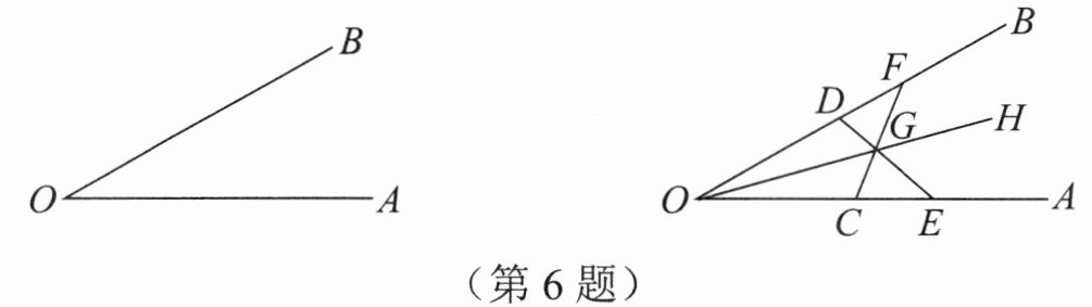 【设计方案】如图,已知$∠AOB$,用刻度尺分别在OA,OB上截取$OC= OD$,$OE= OF$,连接DE,CF相交于点G,过点O,G作射线OH,则射线OH平分$∠AOB$。