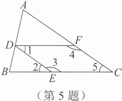 5. 如图,在$△ABC$中,点$D$,$E$,$F分别在边AB$,$BC$,$AC$上,则下列条件中,能判定$DE// AC$的是(