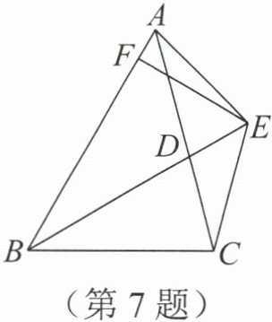 7. 已知:如图,$BD是△ABC$的一条角平分线,且$BD= BC$,$E为BD$延长线上的一点,$BE= BA$,过$E作EF⊥AB$,$F$为垂足,下列结论:①$△ABD≌△EBC$;②$∠BCE+∠BCD= 180^{\circ }$;③$AD= EF= EC$;④$AE= EC$;⑤若$AF= 2$,则$DE= 4$。其中正确的有(