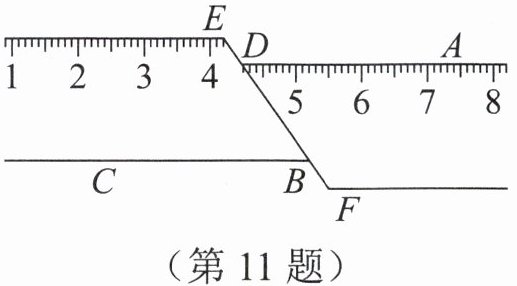 11. 如图,一把直尺沿直线断开并错位,点$E$,$D$,$B$,$F$在同一条直线上,若$∠ADE= 125^{\circ }$,则$∠CBF$的度数为______
