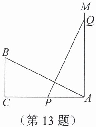 13. 如图,$△ABC$中,$∠C= 90^{\circ }$,$AC= 10cm$,$BC= 5cm$,$PQ= AB$,点$P$,$Q分别在AC和与AC垂直的射线AM$上移动,当$AP= $