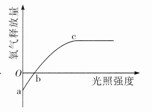 2. 在二氧化碳、水分等条件适宜且不变的条件下,测定某种绿色植物在不同光照强度下氧气的释放量,结果如图所示。下列有关分析错误的是(