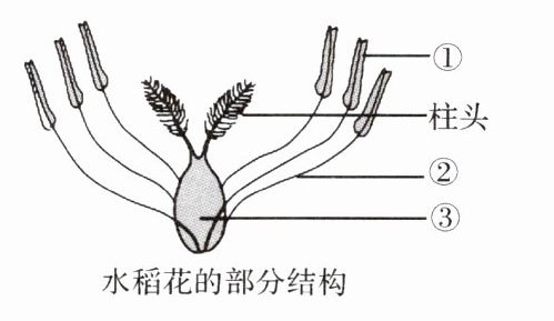 (填“导管”或“筛管”)向上运输到各个部位。(3)水稻花的结构中,能发育成果实的是