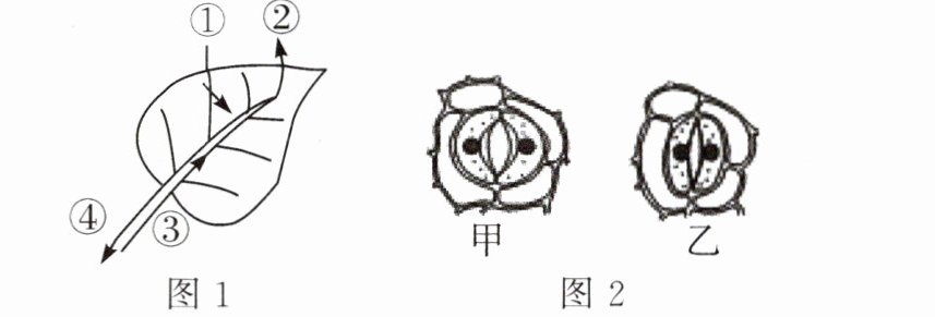 D. 图2气孔处于乙状态时,可能降低③④的运输