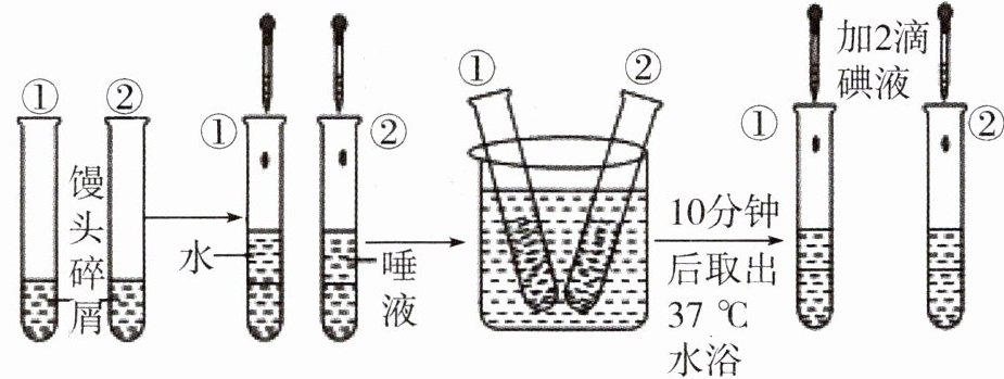 4. 如图为“探究唾液对淀粉的消化作用”的实验过程示意图。下列分析正确的是(