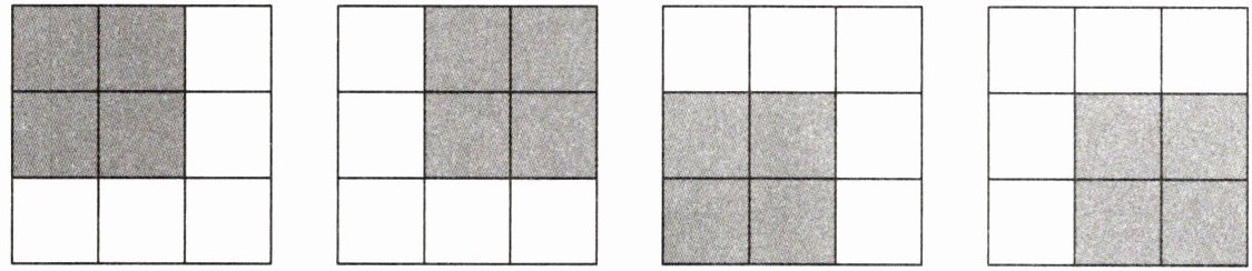 分析:在上面的格子图中,图中共有 9 个边长为 1 的小正方形;边长为 2 的正方形有几个呢?我们涂色,数一数。