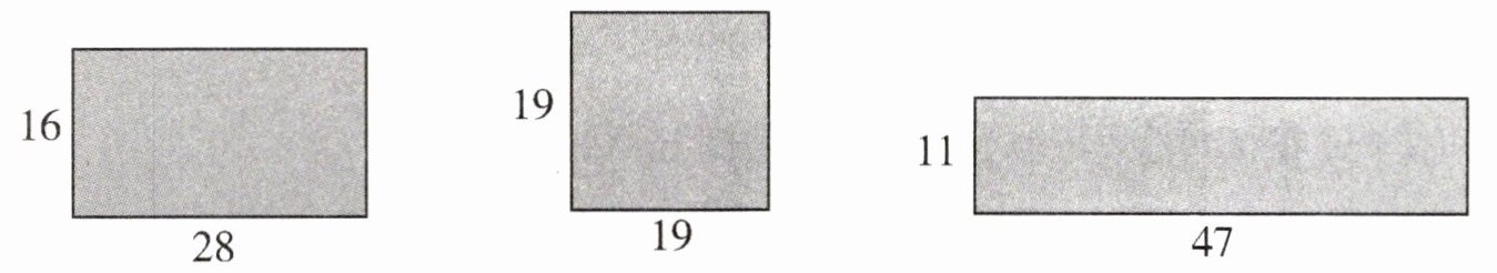3. $ 16 × 28 = 448 $(平方厘米) $ 19 × 19 = 361 $(平方厘米) $ 11 × 47 = 517 $(平方厘米)