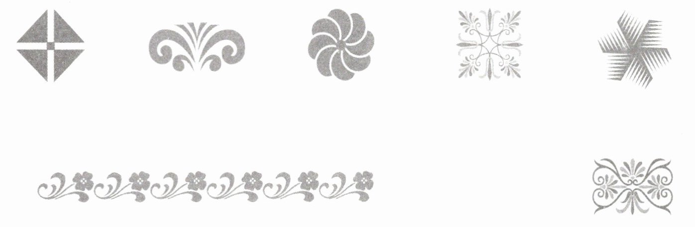 第二个图案:可看作是由图案的一半通过轴对称得到的(圈出图案的一半)。