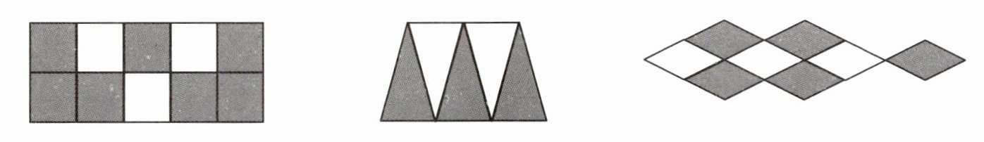 2. 把下面每个图形都看作单位“1”,用分数表示各图中阴影部分的大小。