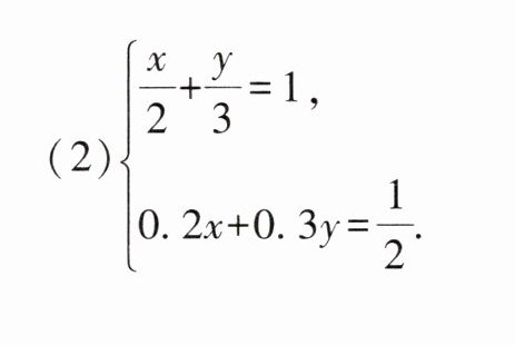把$ y = 4 代入 \textcircled { 1 } $,得$ x = \frac { 2 } { 3 } $. 所以这个方程组的解是$ \left\{ \begin{array} { l } { x = \frac { 2 } { 3 }, } \\ { y = 4. } \end{array} \right. $