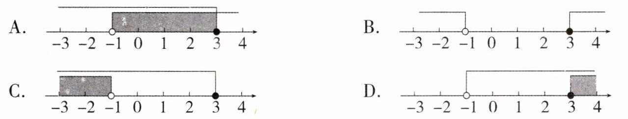 2. 不等式组$\left\{\begin{array}{l} 5 - x \geq 2,\\ 2(x + 3) > 4\end{array} \right. $的解集在数轴上表示正确的是()