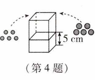 4. 如图,有一容积为$400mL$的容器,在容器中倒入$100mL$的水,此时刻度显示为$5cm$,现将大小规格不同的两种玻璃球放入容器内. 一个大玻璃球的体积为$10cm^{3}$,放入$27$个大玻璃球后,开始放入小玻璃球,若放入$5$颗,水没有溢出,再放入一颗,水会溢出容器,求一个小玻璃球的体积范围. 设一个小玻璃球的体积为$xcm^{3}$,根据题意可以列不等式组为()